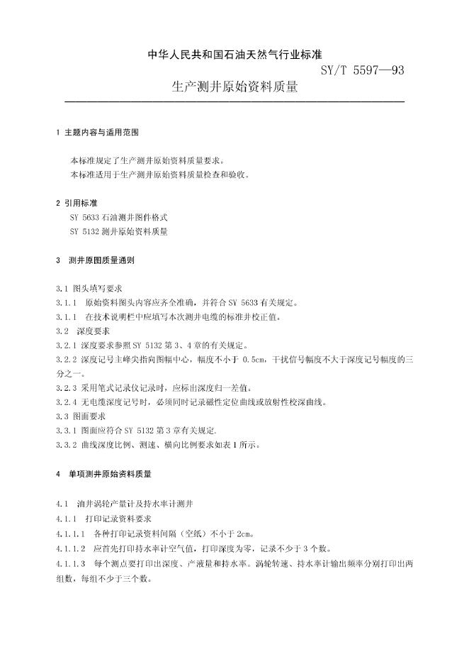 SY/T 5597-1993 生产测井原始资料质量