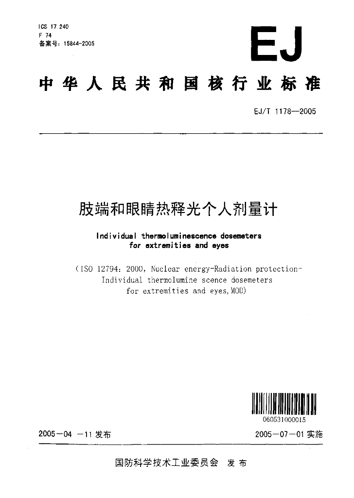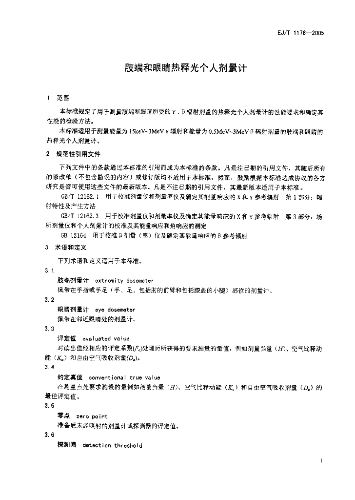 EJ/T 1178-2005 肢端和眼睛热释光个人剂量计