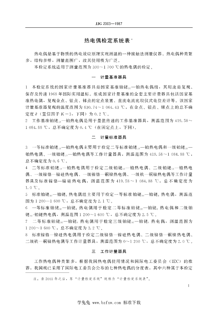 JJG 2003-1987 热电偶