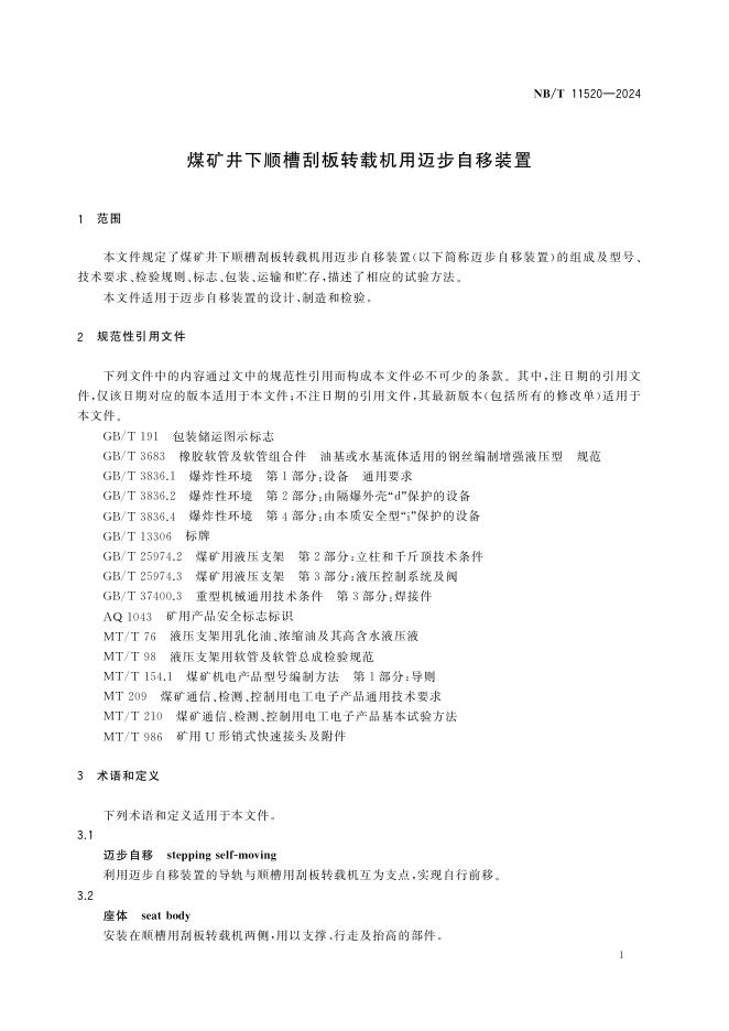 NB/T 11520-2024 煤矿井下顺槽刮板转载机用迈步自移装置