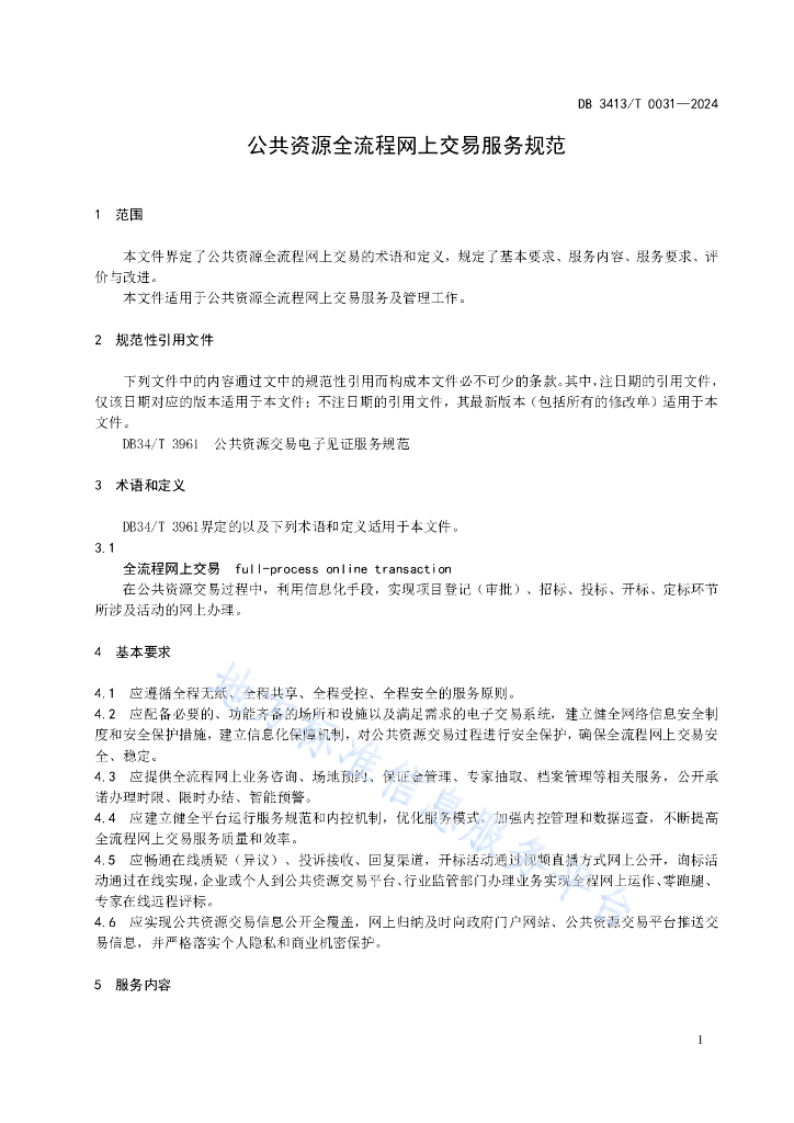 DB3413/T 0031-2024 公共资源全流程网上交易服务规范