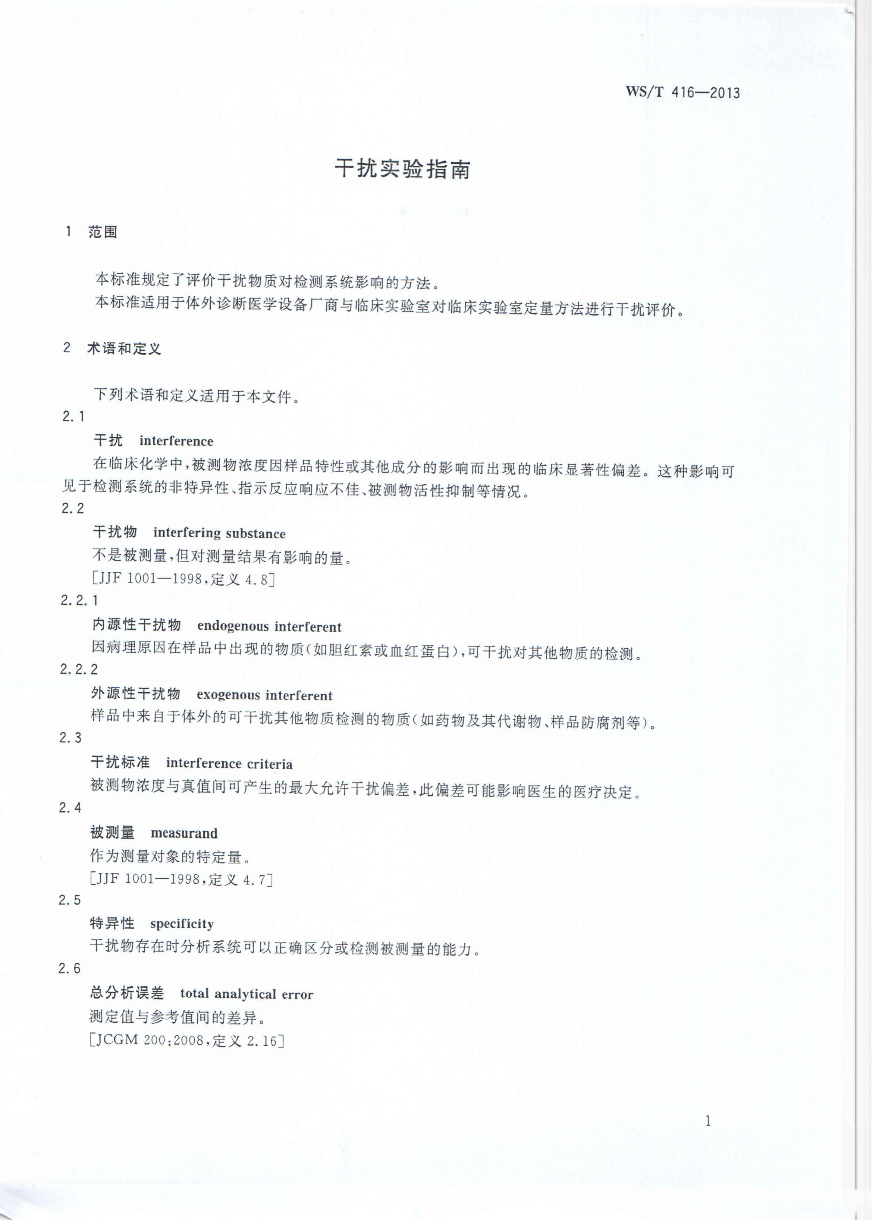 WS/T 416-2013 干扰实验指南