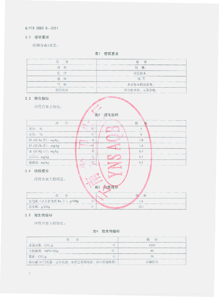 Q/YTX 0003S-2011 天秀牌天旨源胶囊