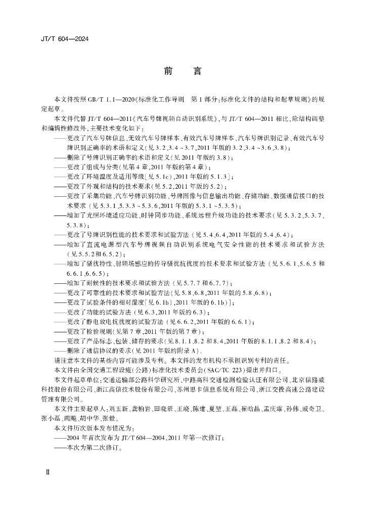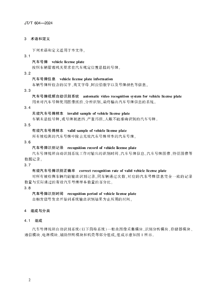 JT/T 604-2024 汽车号牌视频自动识别系统