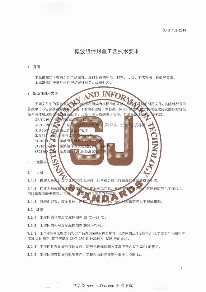 SJ 21158-2016 微波组件封盖工艺技术要求