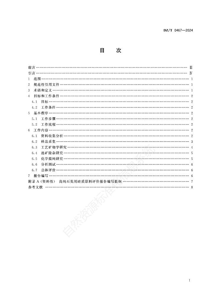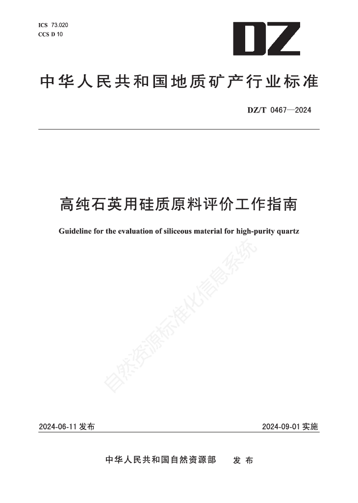 DZ/T 0467-2024 高纯石英用硅质原料评价工作指南
