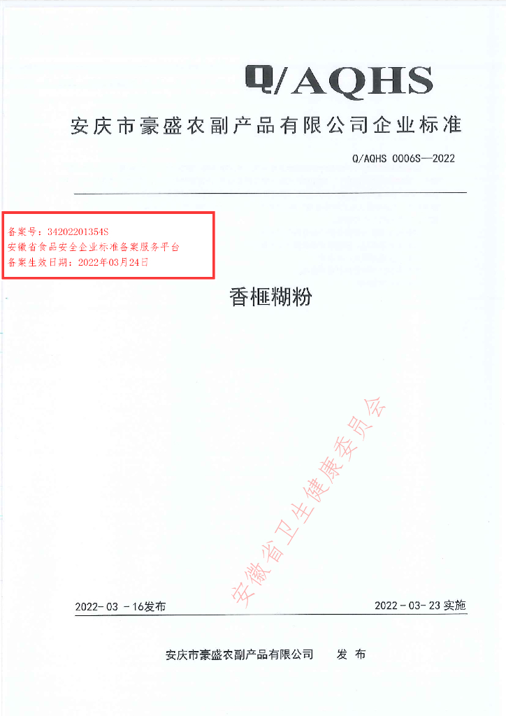 Q/AQHS 0006S-2022 香榧糊粉
