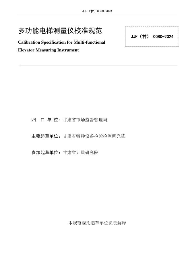 JJF(甘)0080-2024 多功能电梯测量仪校准规范