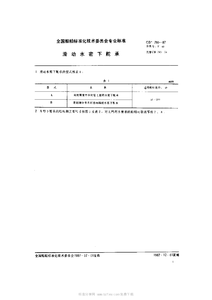 CB 790-1987 滑动水密下舵承