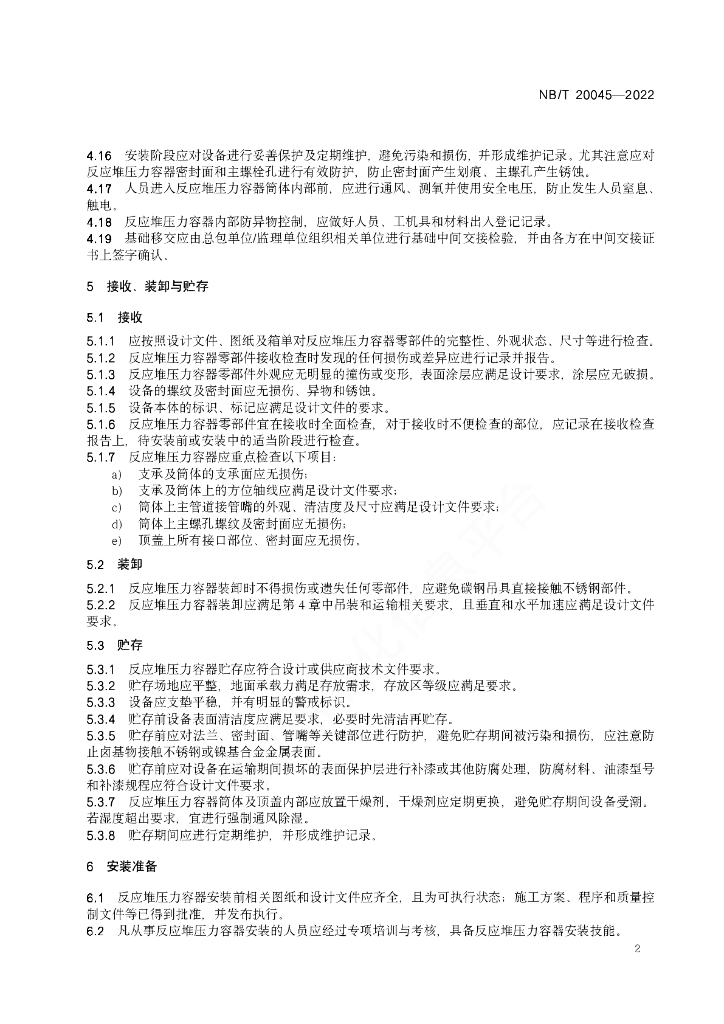 NB/T 20661-2023 压水堆核电厂反应堆压力容器安装技术规程