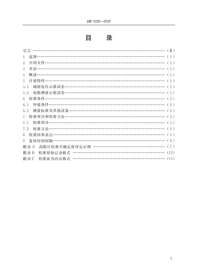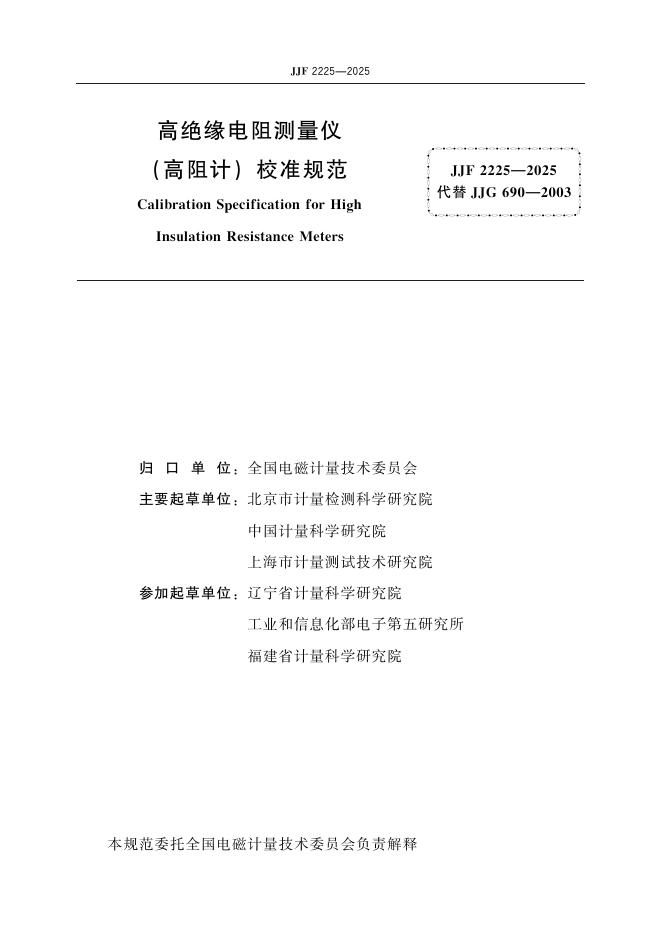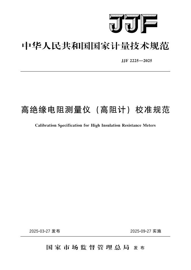 JJF 2225-2025 高绝缘电阻测量仪(高阻计)校准规范