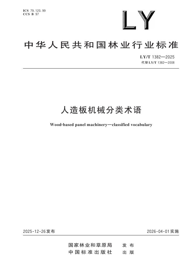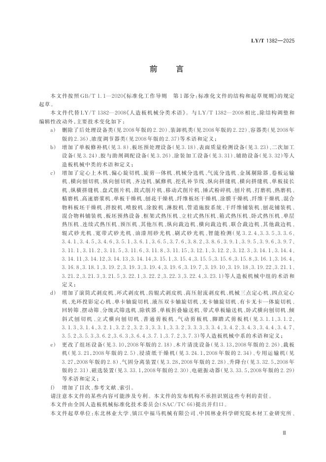 LY/T 1382-2025 人造板机械分类术语