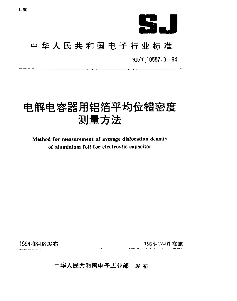 SJ/T 10557.3-1994 电解电容器用铝箔平均位错密度测量方法