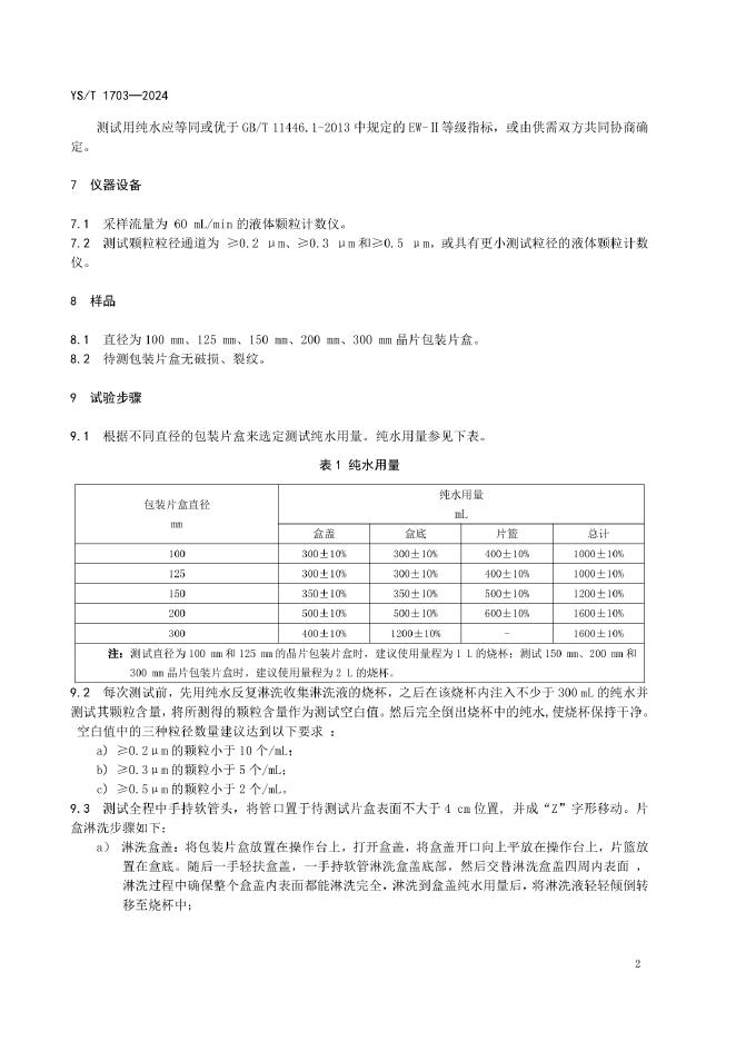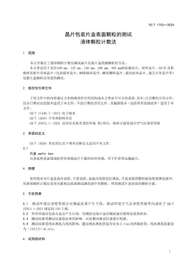 YS/T 1703-2024 晶片包装片盒表面颗粒的测试 液体颗粒计数法