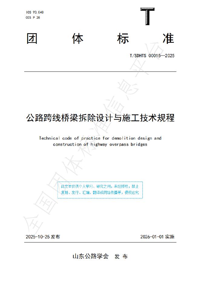 T/SDHTS 00015-2025 公路跨线桥梁拆除设计与施工技术规程
