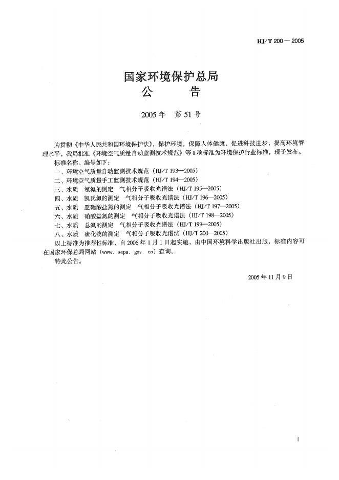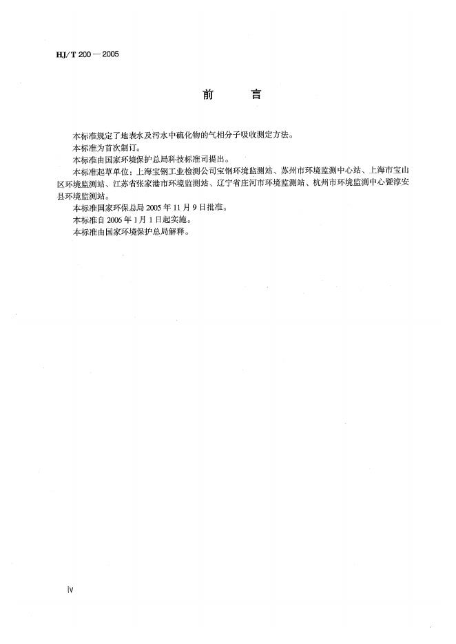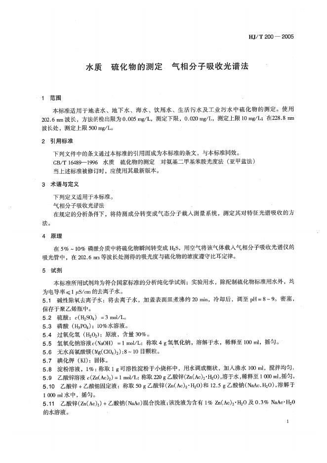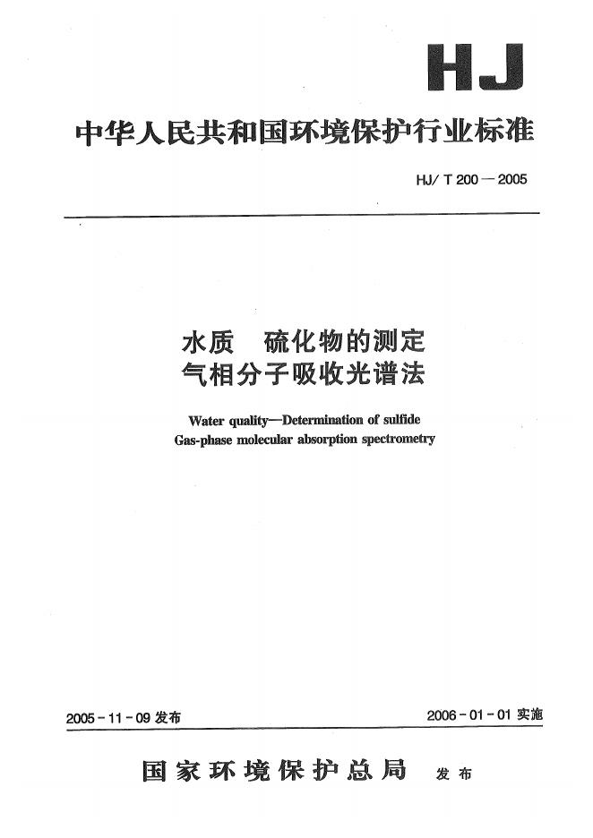 HJ/T 200-2005 水质 硫化物的测定 气相分子吸收光谱法
