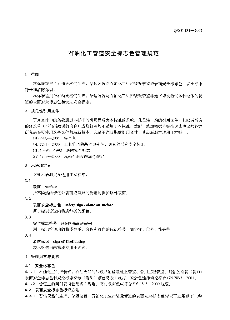 Q/SY 134-2007 石油化工管道安全标志色管理规范