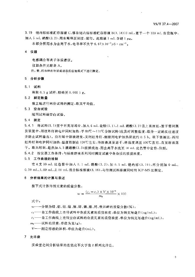 YS/T 37.4-2007 高纯二氧化锗化学分析方法 电感耦合等离子体质谱法测定镁、铝、钴、镍、铜、锌、铟、铅、钙、铁和砷含量