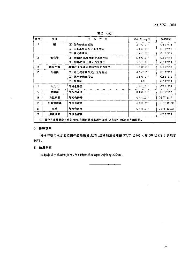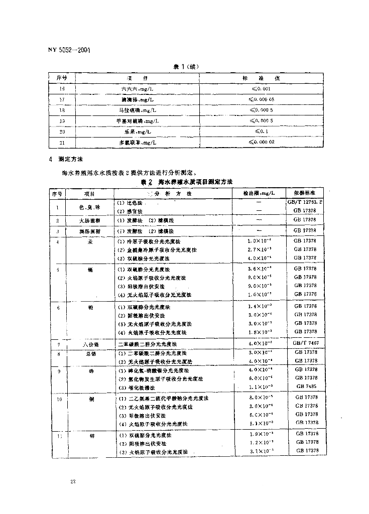 NY 5052-2001 无公害食品 海水养殖用水水质