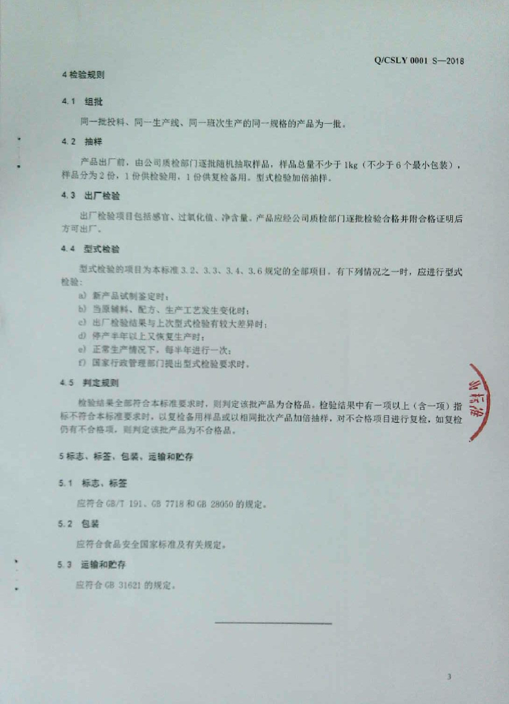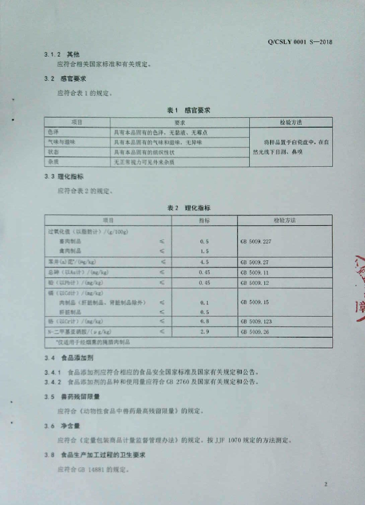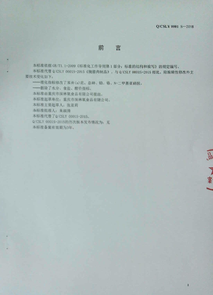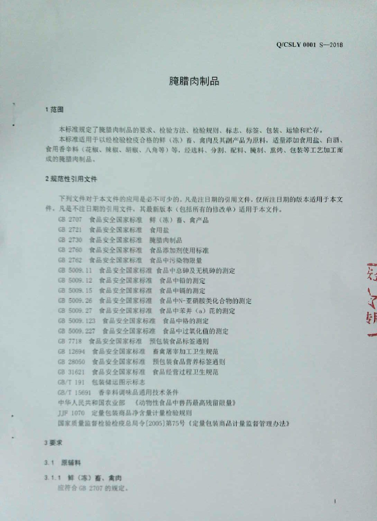 Q/CSLY 0001S-2018 腌腊肉制品