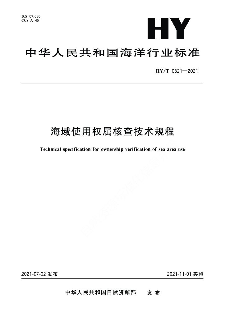 HY/T 0321-2021 海域使用权属核查技术规程
