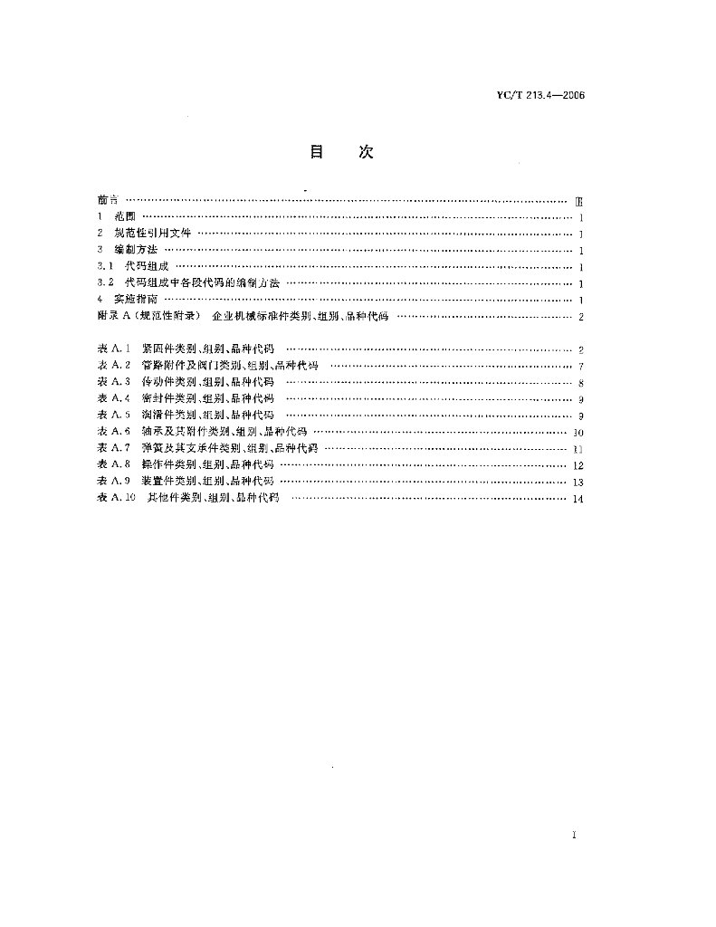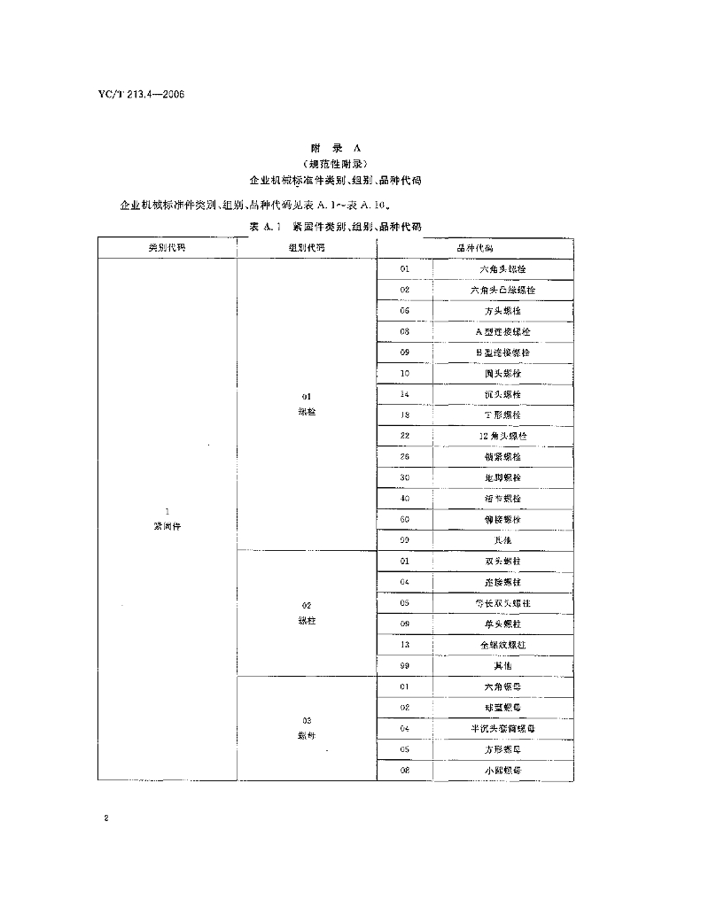 YC/T 213.4-2006 烟草机械产品用物料 分类和编码 第4部分:企业机械标准件