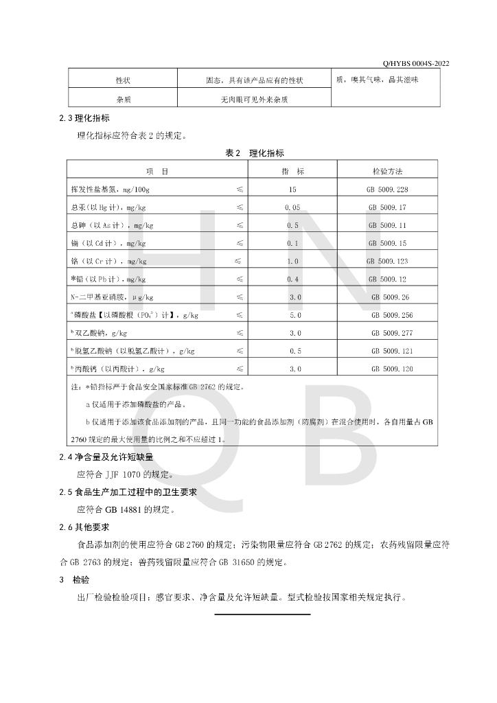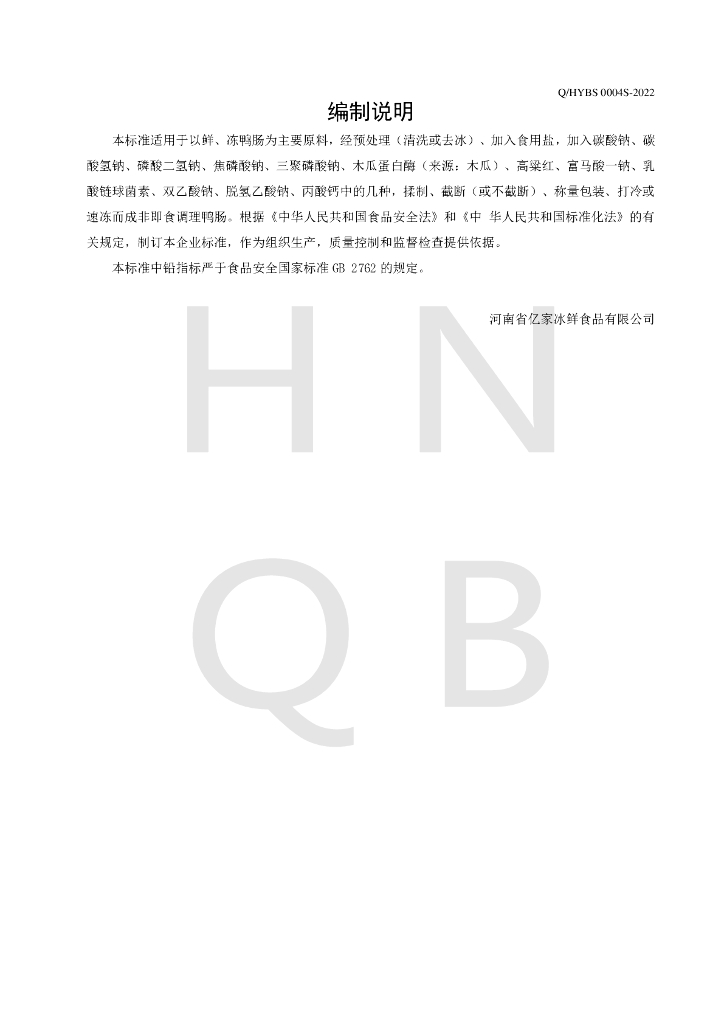 Q/HYBS 0004S-2022 调理鸭肠