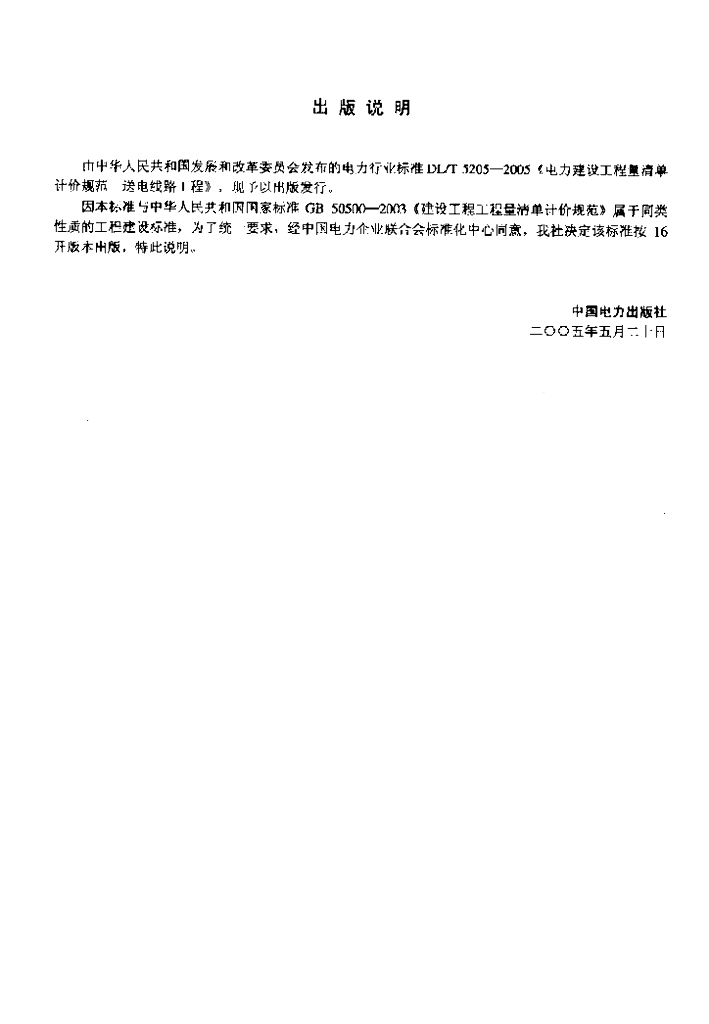 DL/T 5205-2011 电力建设工程工程量清单计价规范 输电线路工程