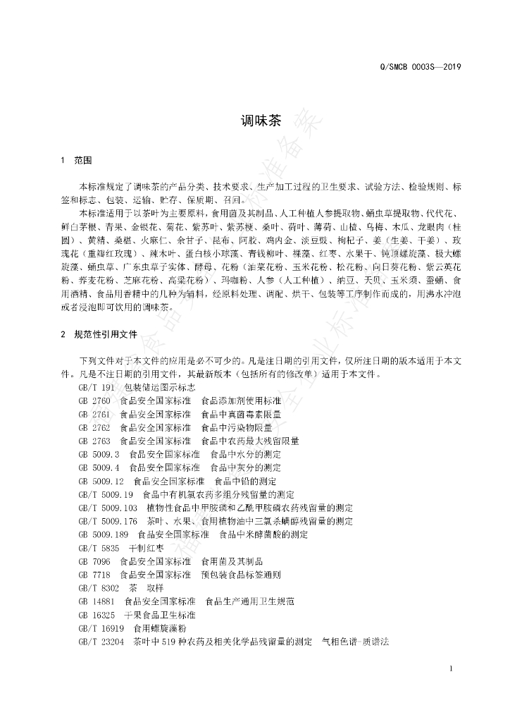 Q/SMCB 0003S-2019 调味茶