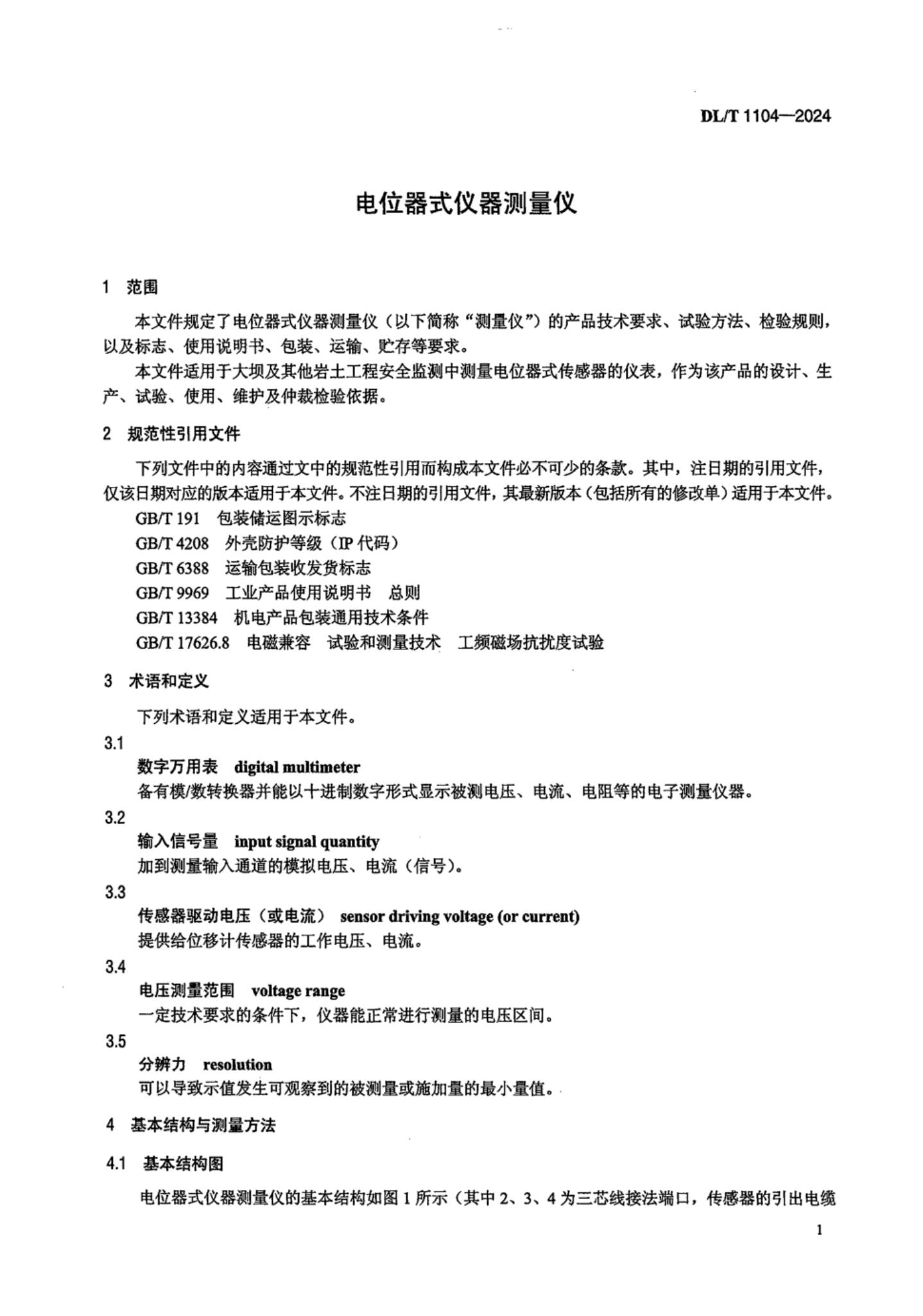 DL/T 1104-2024 电位器式仪器测量仪
