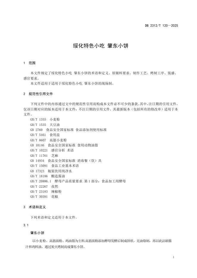 DB2312/T 120-2025 绥化特色小吃 肇东小饼