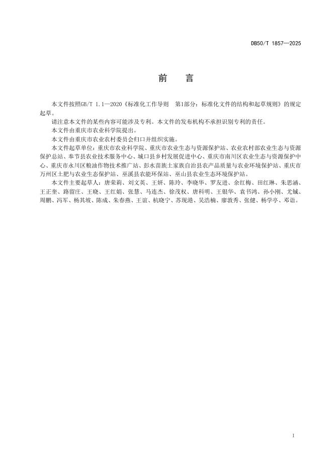 重庆市农业科学院、重庆市农业生态与资源保护站、农业农村部农业生态与资源保护总站、奉节县农业技术服务中心、城口县乡村发展促进中心、重庆市南川区农业生态与资源保护中心、重庆市永川区粮油作物技术推广站、彭水苗族土家族自治县农产品质量与农业环境保护站、重庆市万州区土肥与农业生态保护站、巫溪县农能环保站、巫山县农业生态环境保护站。