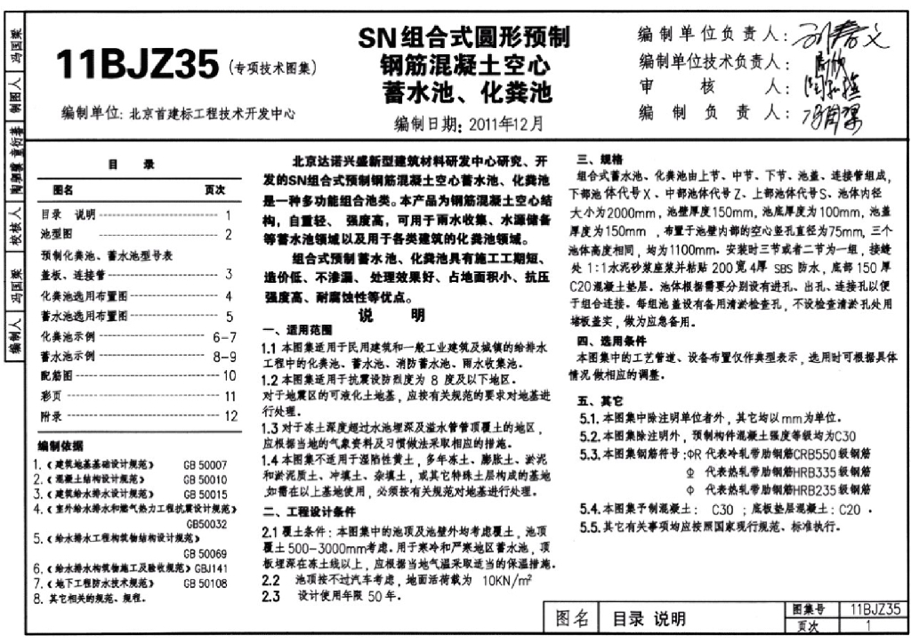 11BJZ35 SN组合式圆形预制钢筋混凝土空心蓄水池、化粪池图集
