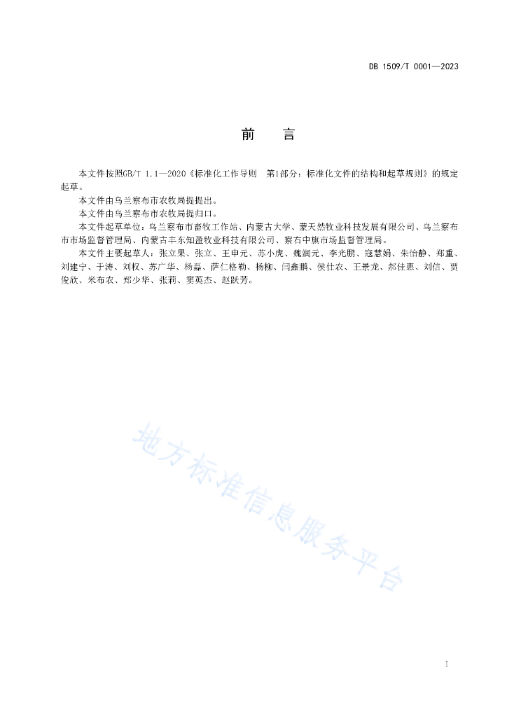 乌兰察布市畜牧工作站、内蒙古大学、蒙天然牧业科技发展有限公司、乌兰察布市市场监督管理局、内蒙古丰东知盈牧业科技有限公司、察右中旗市场监督管理局