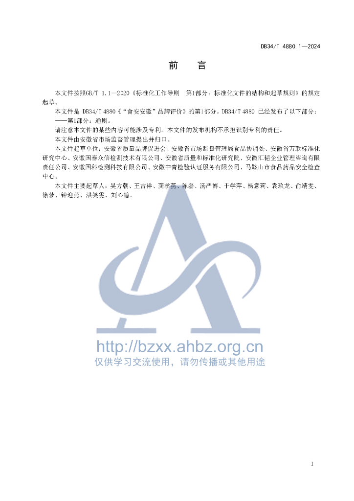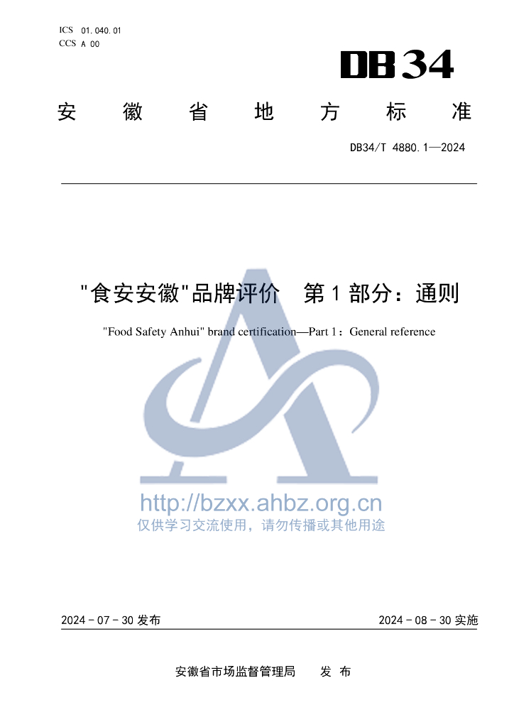 DB34/T 4880.1-2024 “食安安徽”品牌评价 第1部分:通则