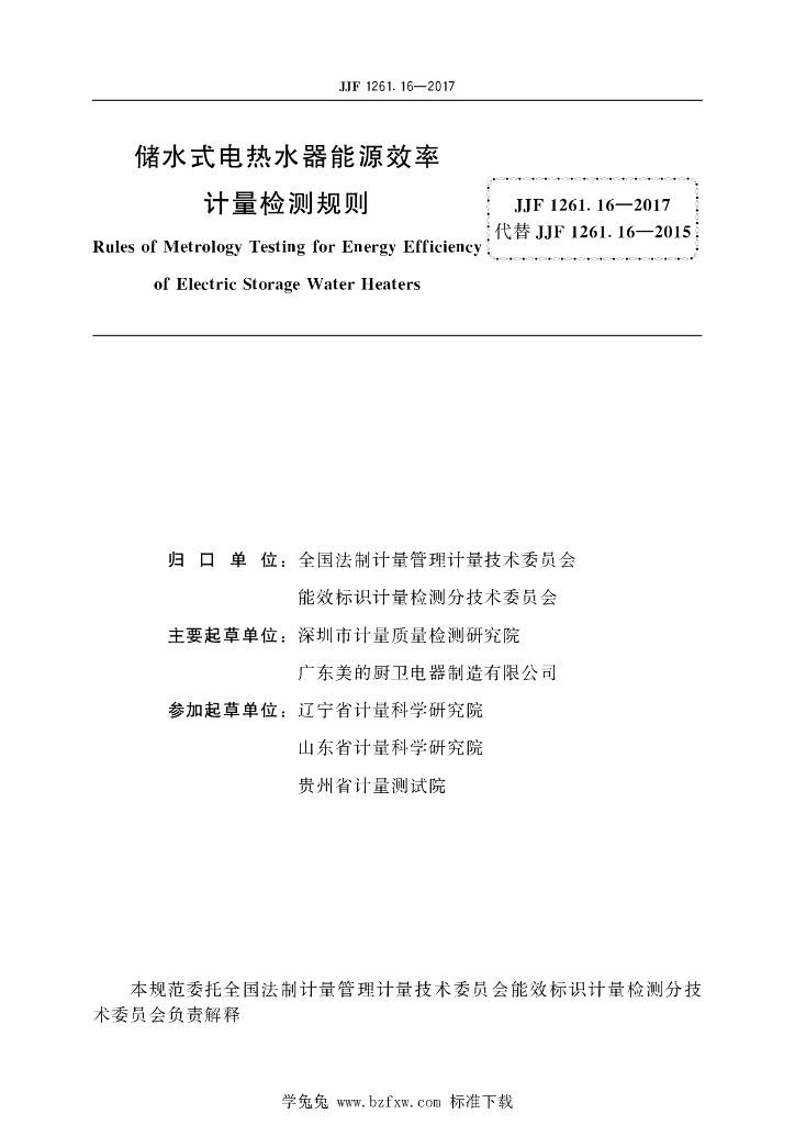 深圳市计量质量检测研究院、广东美的厨卫电器制造有限公司、辽宁省计量科学研究院、山东省计量科学研究院、贵州省计量测试院