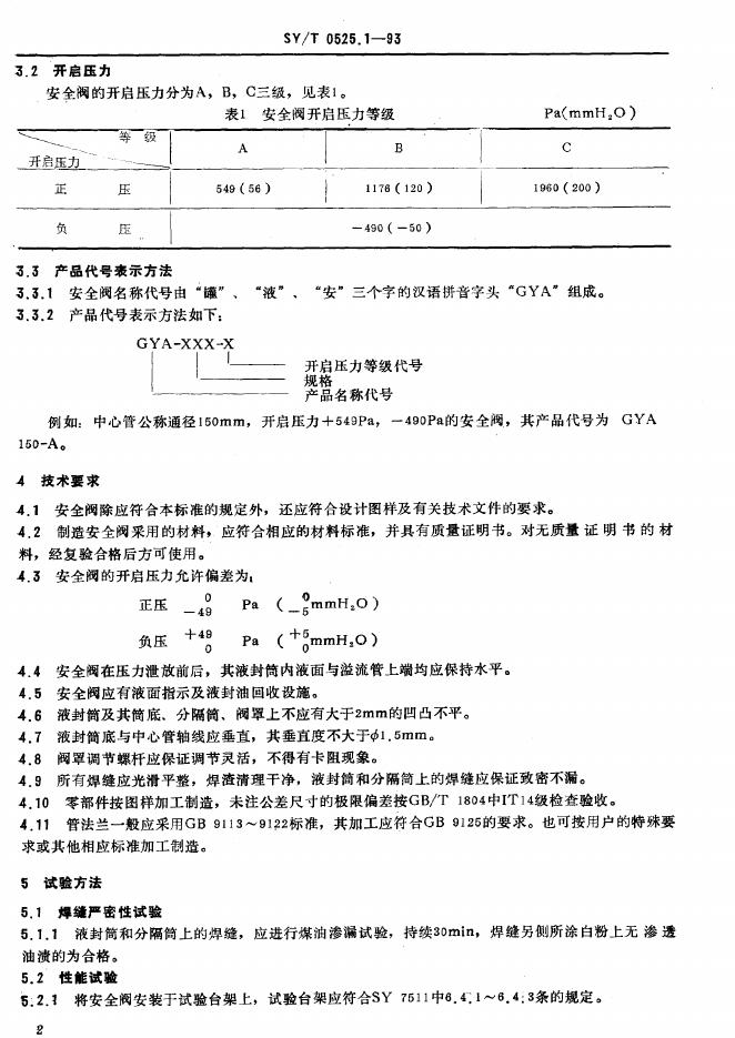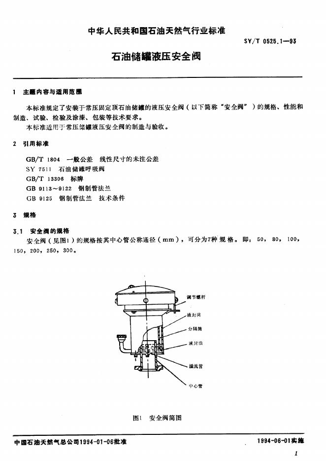 SY/T 0525.1-1993 石油储罐液压安全阀
