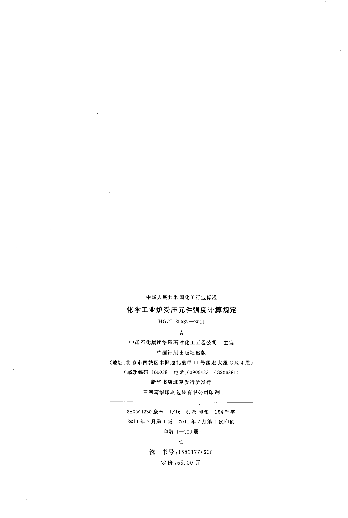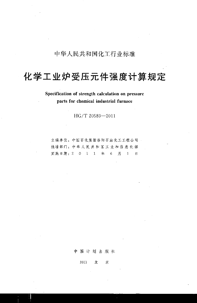 HG/T 20589-2011 代替 HG/T 20589-1996 化学工业炉受压元件强度计算规定