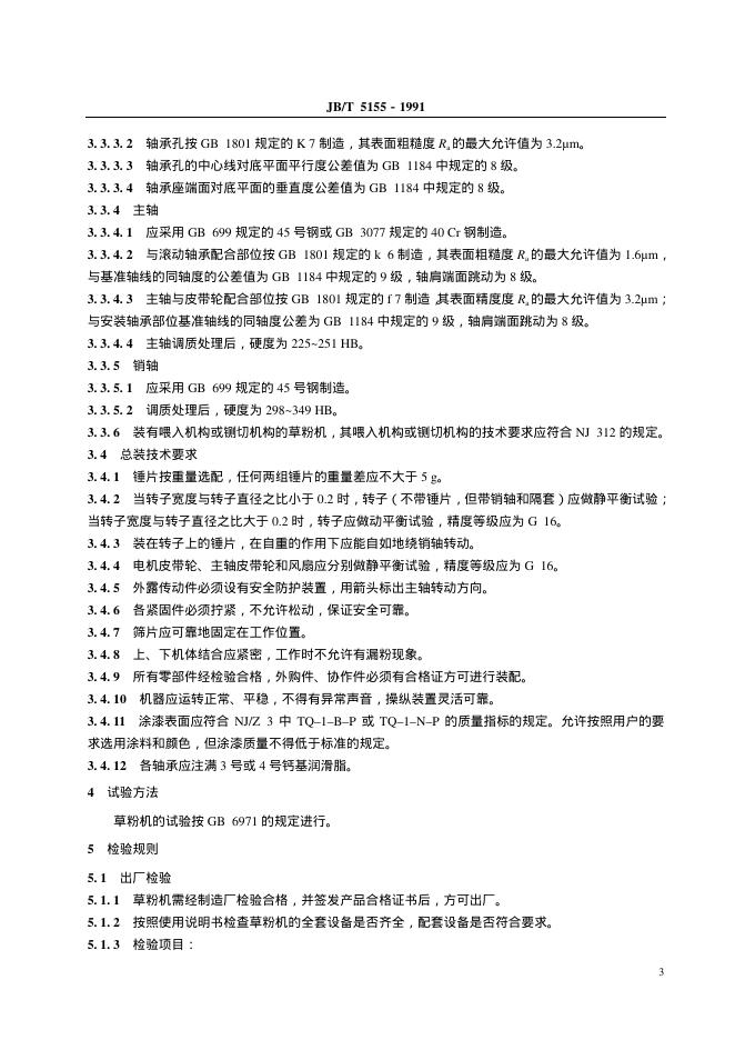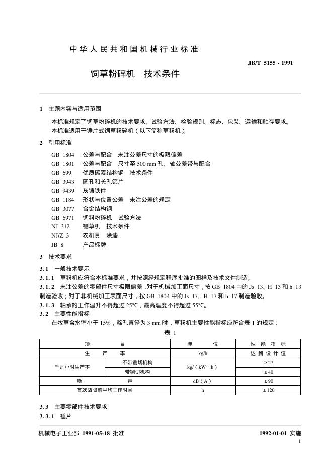 JB/T 5155-1991 饲草粉碎机 技术条件
