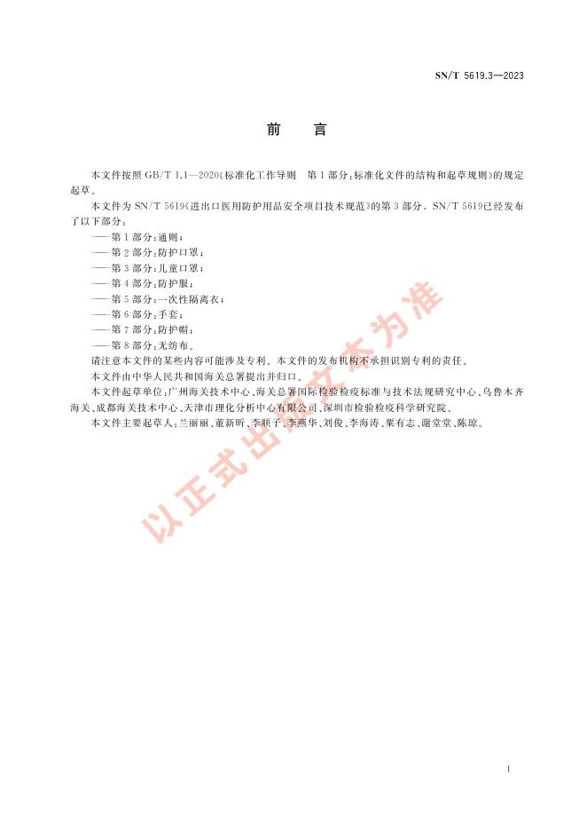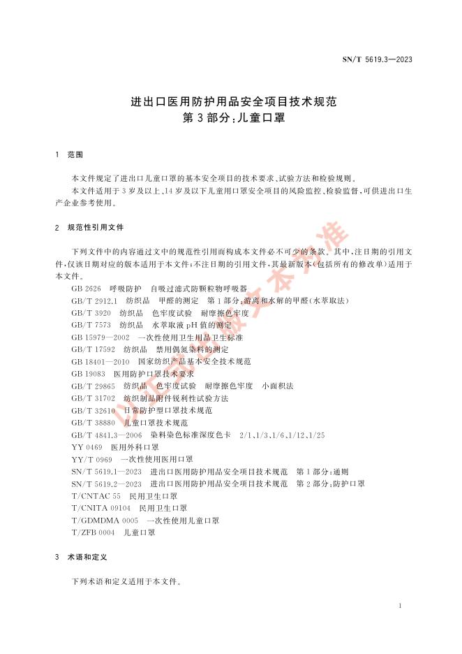 SN/T 5619.3-2023 进出口医用防护用品安全项目技术规范 第3部分:儿童口罩