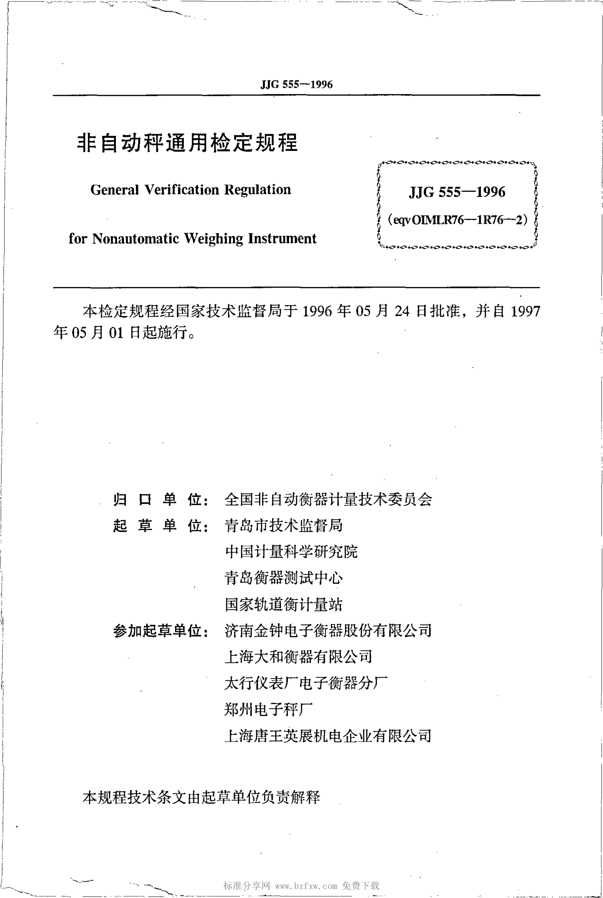 闫宝珠(青岛市技术监督局)、施昌彦(中国计量科学研究院)、王振文(青岛衡器测试中心)、刘槛(青岛市技术监督局)、隋建军(青岛衡器测试中心)、陈森林(国家轨道衡计量站)、贾颐康(济南金钟电子衡器股份有限公司)、陆悦明(上海大和衡器有限公司)、殷卫宁(太行仪表厂电子衡器分厂)、徐平均(郑州电子秤厂)、张均培(上海唐王英展机电企业有限公司)