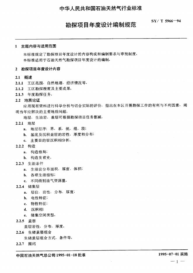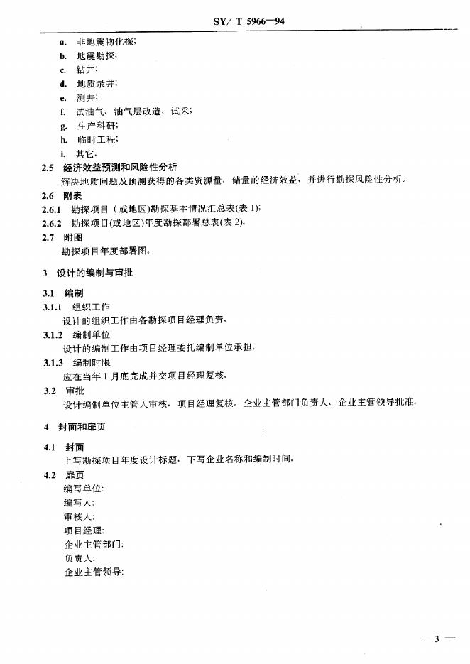 SY/T 5966-1994 勘探项目年度设计编制规范