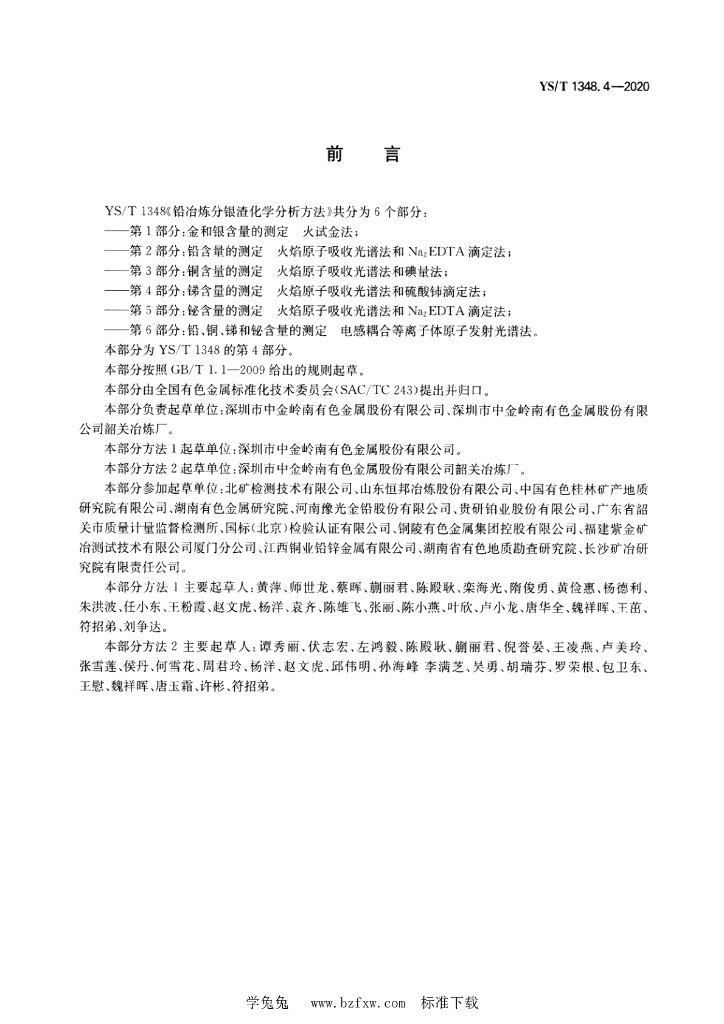 YS/T 1348.4-2020 铅冶炼分银渣化学分析方法 第4部分:锑含量的测定 火焰原子吸收光谱法和硫酸铈滴定法