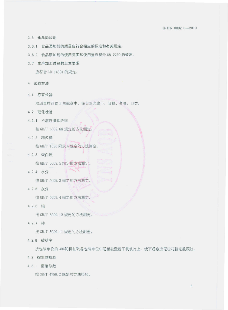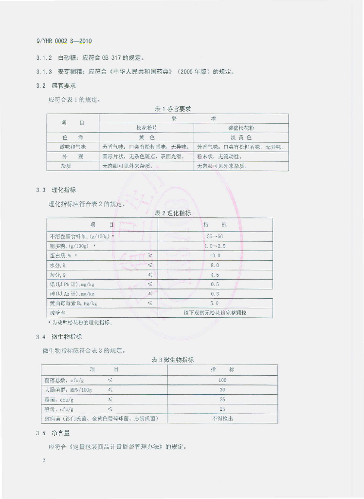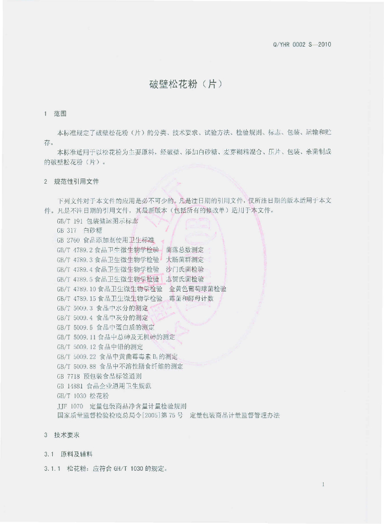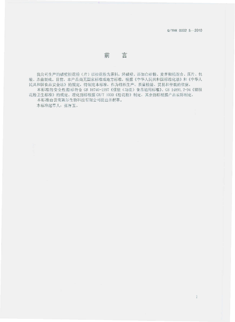 Q/YHR 0002S-2010 破壁松花粉(片)