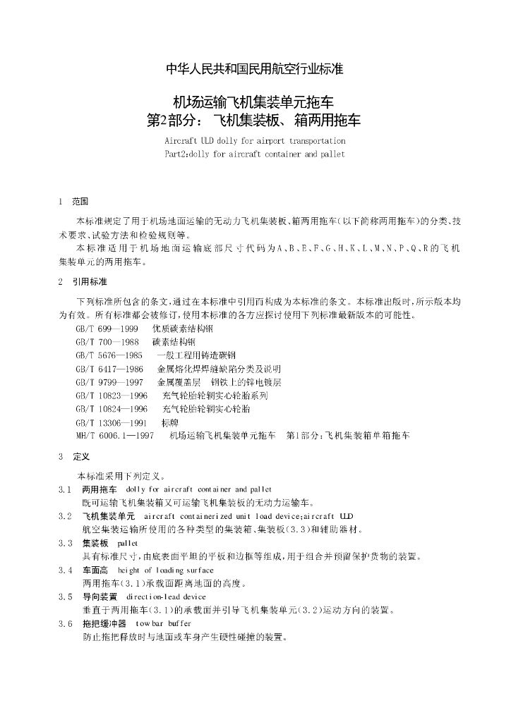 MH/T 6006.2-2000 机场运输飞机集装单元拖车 第2部分:飞机集装板、箱两用拖车