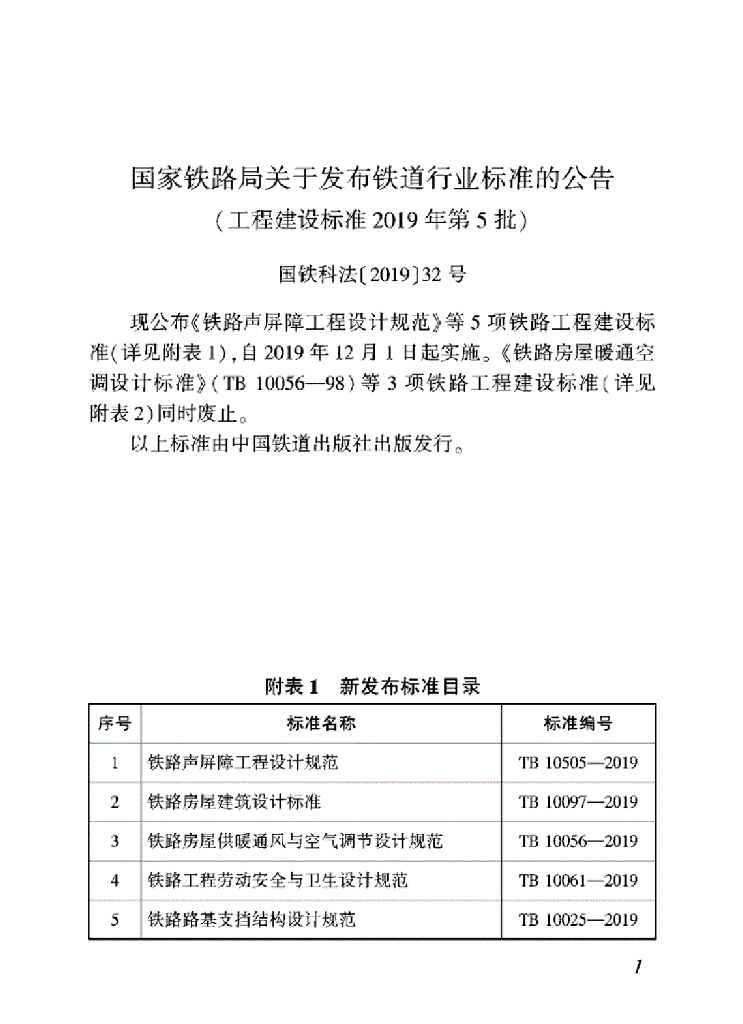 TB 10097-2019 铁路房屋建筑设计标准
