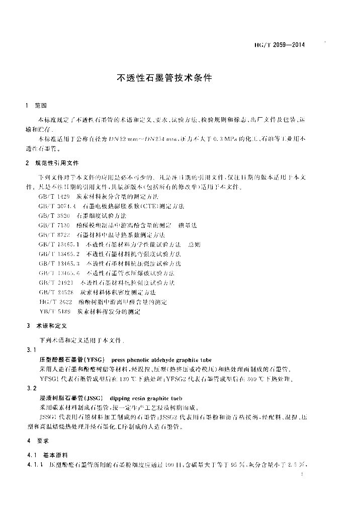 HG/T 2059-2014 代替 HG/T 2059-2004 不透性石墨管技术条件