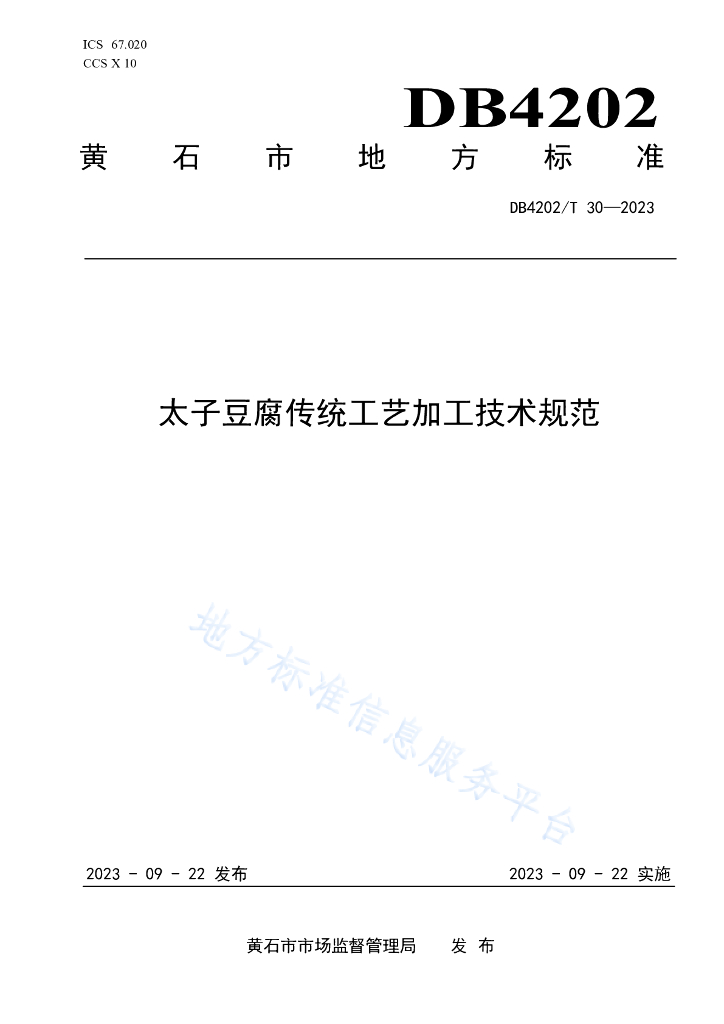 黄石市阳新太子豆腐产业协会、黄石新诚农业发展有限公司、黄石市食品药品检验检测中心、黄石市信息与标准化所