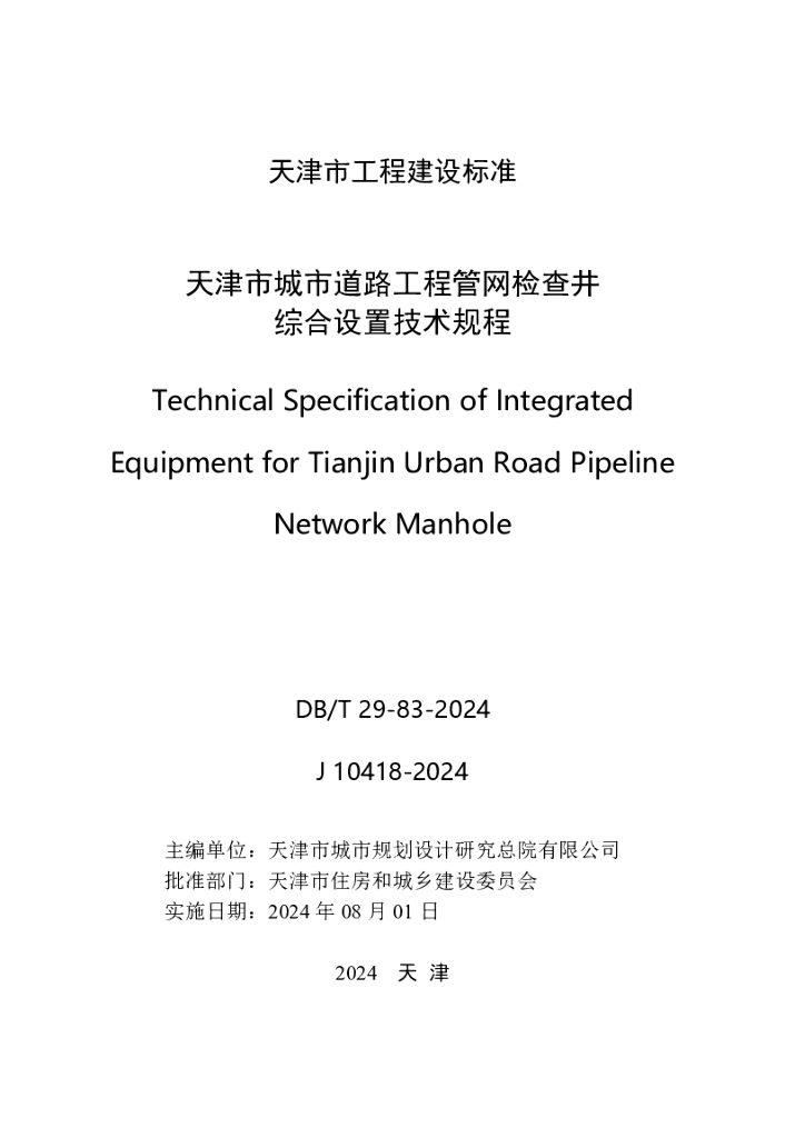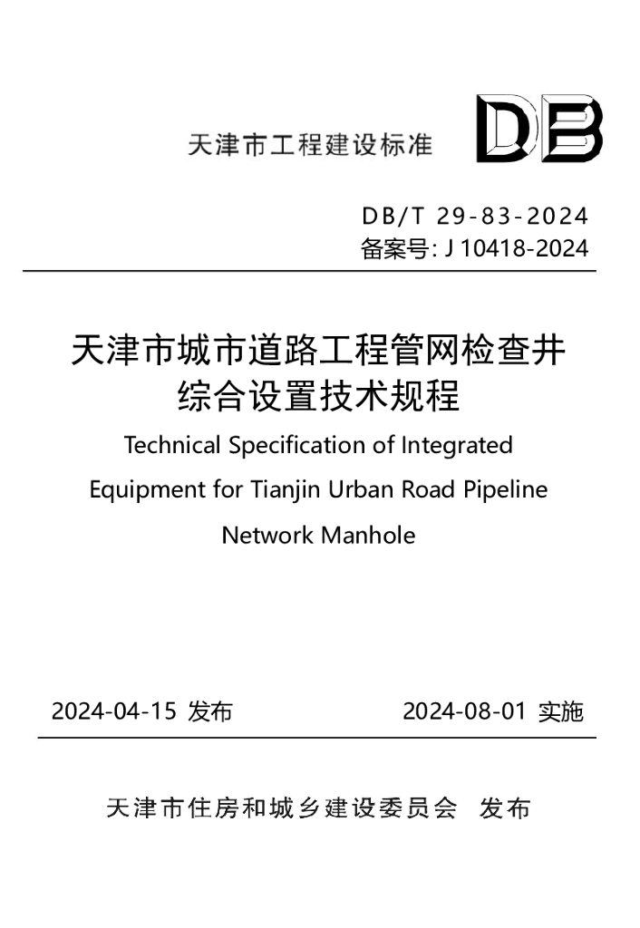 DB/T 29-83-2024 天津市城市道路工程管网检查井综合设置技术规程