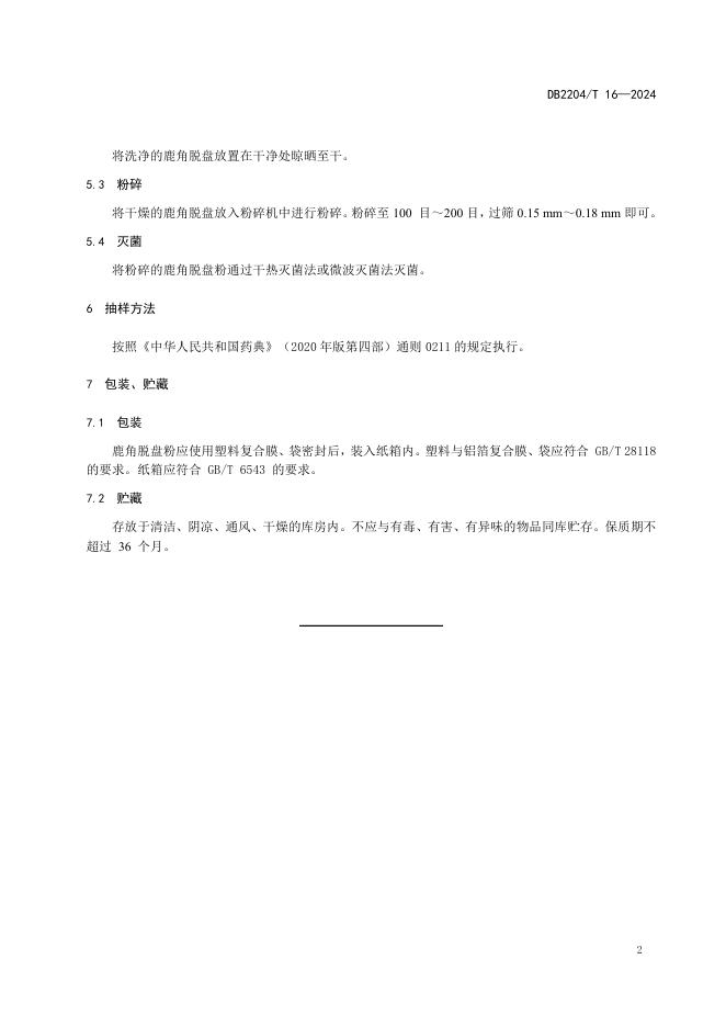 DB2204/T 16-2024 鹿角脱盘粉加工技术规范